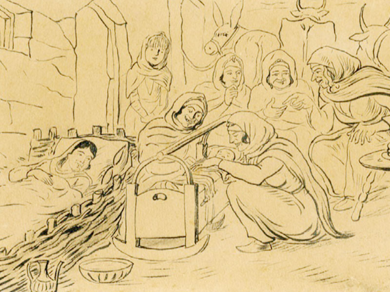 Е.Г. Пчелиной зафиксирована система запретов и предписаний санитарно-гигиенического, магического и предохранительного характера, этические нормы семейно-брачных отношений, сведения о сакральных местах (локальных), и – главное – традиционные обряды, оставшиеся в прошлом. Это и сакральный характер авдæнбæттæн – «первого пеленания и первого положения в люльку», и обряд «угощения по этому поводу»; обряд поклонения роженицы святилищу Мады Майрæм; обряд «моление мальчика» – «лæппуйы куывд», который уже не справлялся в начале XXвека; обряд «наречение новорожденного мальчика именем» – номæвæрæн, который утратил к XX веку две этнографические черты: отец новорожденного мальчика не принимал участия в празднике: если он был молод, то «считалось неприличным, чтобы он в этот день вообще находился в своем доме. Если отцу было 25–30 лет, то в это время он работал на заднем дворе, колол дрова, резал баранов, ухаживал за лошадьми приехавших гостей, но в дом не входил. Если отцу было лет 35–40, то он находился у своего дома и наблюдал за работавшими и обслуживавшими гостей, сам в физической работе участия не принимал. Войти в дом и помещение, где сидели гости, а тем более сесть с ними за стол он не мог»; вторая черта, переданная во времени: «…отец новорожденного в день имянаречения украдкой клал около колыбели свой кинжал без ножен или же свою шашку, что означало признание им сына». В «Примечаниях» автор поясняет, что у мужчин-осетин обычай скрывания к своему ребенку чувств обусловлен будущим: мальчик должен вырасти в неизнеженных, спартанских условиях, чтобы стать настоящим мужчиной, защитником, воином.